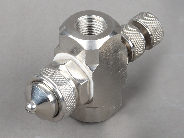 1、空氣霧化噴嘴特殊的內(nèi)部結(jié)構(gòu)設(shè)計(jì)能使液體和氣體均勻混合,產(chǎn)生微細(xì)液滴尺寸的噴霧或粗液滴噴霧。通過(guò)增加氣體壓力或降低液體壓力可得到更加微細(xì) (30微米左右)的液滴噴霧,從而達(dá)到較高的氣體流率與液體流率比