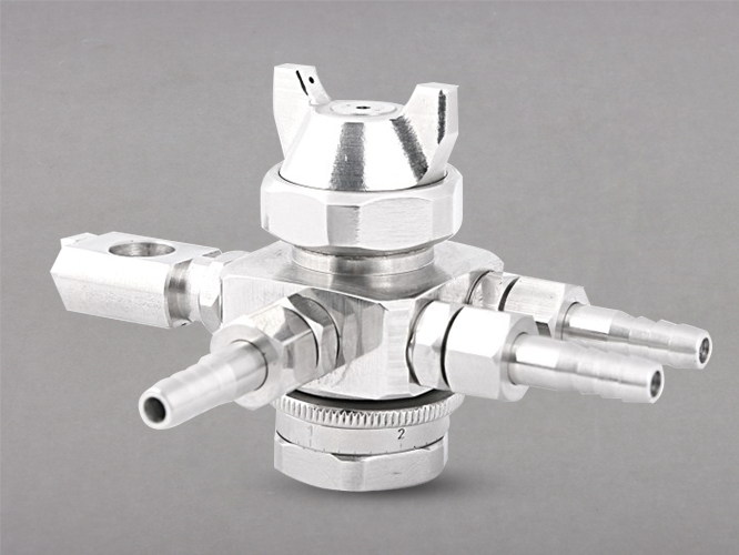 在應(yīng)用于精細涂覆領(lǐng)域時,雙流體噴嘴具有一些特殊的優(yōu)勢。例如,在制造電子元器件時,需要對小尺寸元器件進行涂覆以保證其性能和可靠性,這時傳統(tǒng)的涂覆方法常常難以滿足要求。而使用雙流體噴嘴則可以產(chǎn)生非常細小的液滴,并且控制精度高,從而實現(xiàn)高質(zhì)量的精細涂覆。此外,雙流體噴嘴在許多工業(yè)生產(chǎn)和科學(xué)研究領(lǐng)域中被廣泛應(yīng)用,如食品加工、醫(yī)藥制造、化妝品生產(chǎn)、廢氣處理等領(lǐng)域。由于其高效的霧化效率和良好的均勻性,它已經(jīng)成為了許多工業(yè)生產(chǎn)中必不可少的設(shè)備之一。
