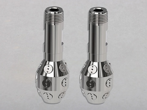 2、該噴嘴有15或21個全錐形噴嘴可供選擇,可以在10巴的壓力下完全覆蓋小容器的內(nèi)表面