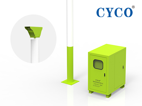 霧樁由機(jī)頭組件、立桿組件、水路系統(tǒng)、電控系統(tǒng)四部分組成。