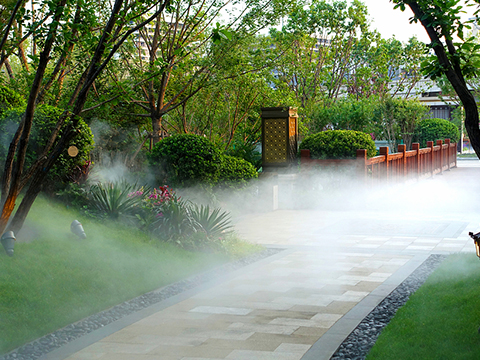 常常用FD防滴漏噴嘴、JM紅寶石撞擊噴嘴、AAZ微細(xì)霧化噴嘴制成一套人造霧系統(tǒng),在假山和花木中噴出細(xì)霧制造出如癡如醉的夢(mèng)幻景象。